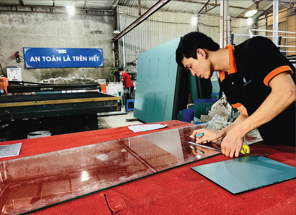 Vinaglass là xưởng gia công và sản xuất gương kính trực tiếp, chuyên cung cấp các dòng gương Bỉ nhập khẩu như gương trắng, gương trà, gương đen và gương màu khói cao cấp. Với hệ thống máy móc CNC hiện đại, đội ngũ kỹ thuật tay nghề cao, Vinaglass đáp ứng chính xác mọi yêu cầu từ kích thước, kiểu dáng đến tiến độ thi công.